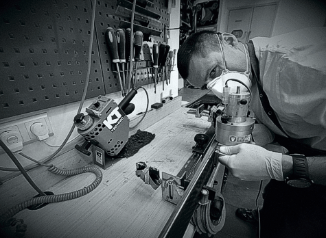 - Wyrównywanie ślizgów i nanoszenie odpowiednie struktury ślizgu – to gładki poślizg i dobre prowadzenie nart.
